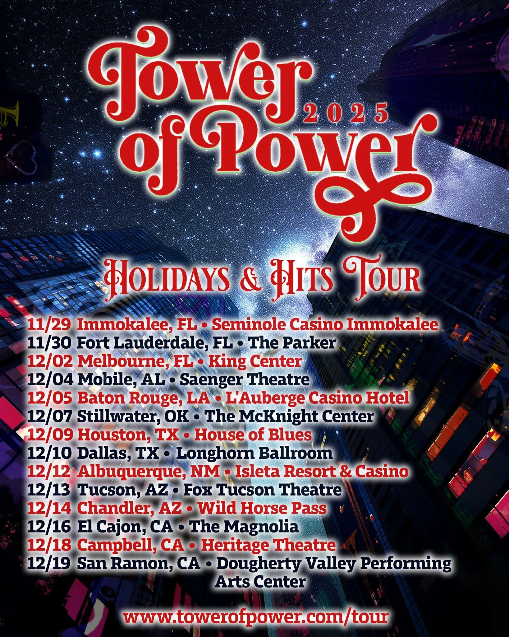 Ho ho ho! 🎅Santa Claus is coming to town... and so is TOP! Tower of Power's 2025 Holiday & Hits Tour is coming to a city near you! Tickets on sale this Friday, August 22nd at 10am local time.